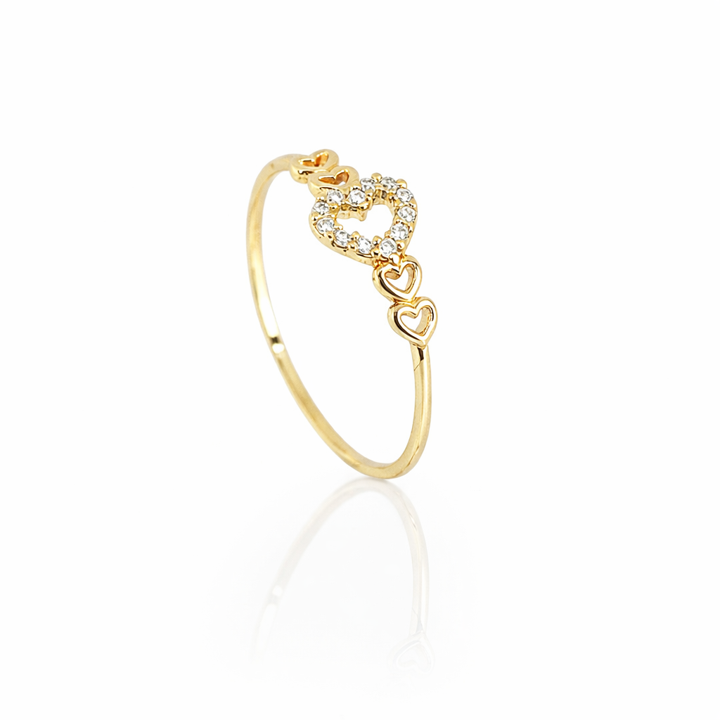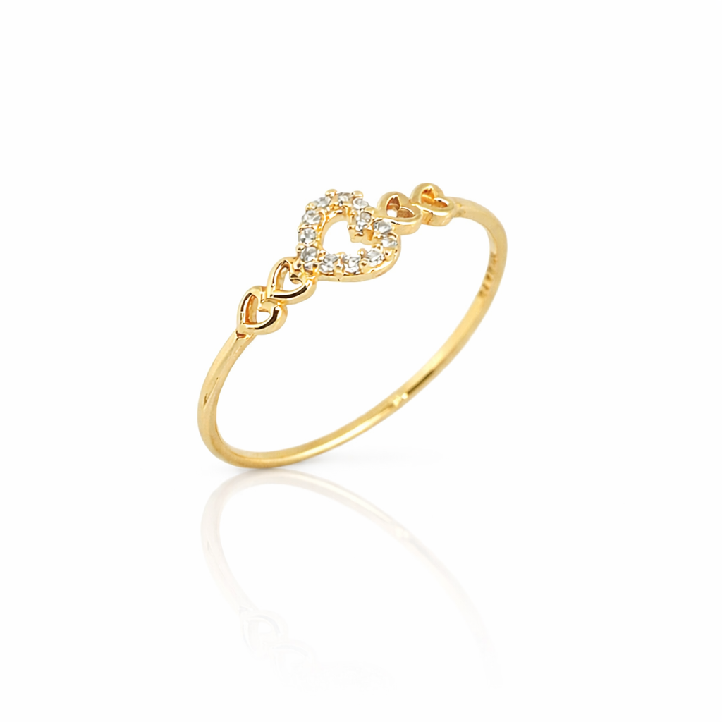 Delicado e cheio de significado, este anel em ouro traz um coração vazado cravejado de pedras que simboliza amor, leveza e conexão verdadeira. Os pequenos corações laterais complementam o design com um toque romântico e sofisticado, tornando a peça perfeita para quem aprecia joias delicadas e cheias de emoção. Um brilho sutil que fala de sentimentos eternos. 💍✨