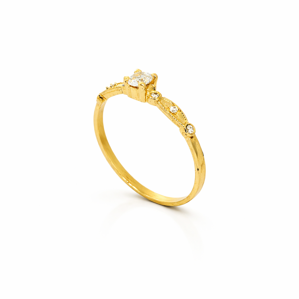 Delicado, elegante e atemporal, este anel em ouro é a expressão perfeita da sofisticação minimalista. A pedra central em destaque simboliza luz, amor e pureza, enquanto os detalhes laterais adicionam charme e brilho na medida certa. Uma joia pensada para marcar momentos especiais e eternizar sentimentos com leveza e elegância. 💍✨