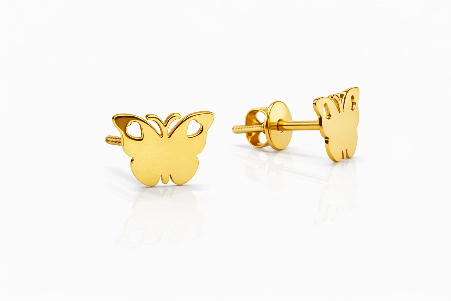 Brinco em ouro com design em formato de borboleta e acabamento liso polido, proporcionando brilho intenso e visual moderno. Seu formato delicado aliado à estrutura confortável garante um encaixe perfeito, ideal para quem busca uma joia versátil e atemporal.