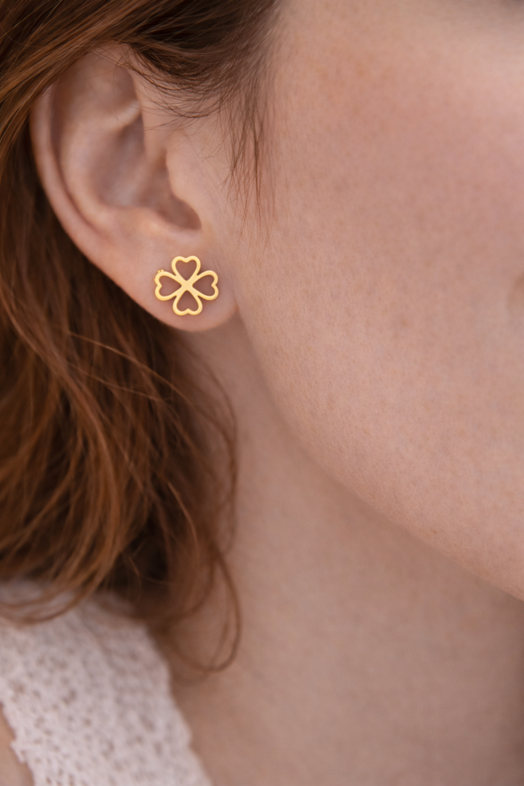 Delicados, simbólicos e cheios de charme, os Brincos Trevo Vazado em Ouro unem o formato do trevo com contornos de coração, criando uma joia que representa amor, sorte e boas energias 💛🍀