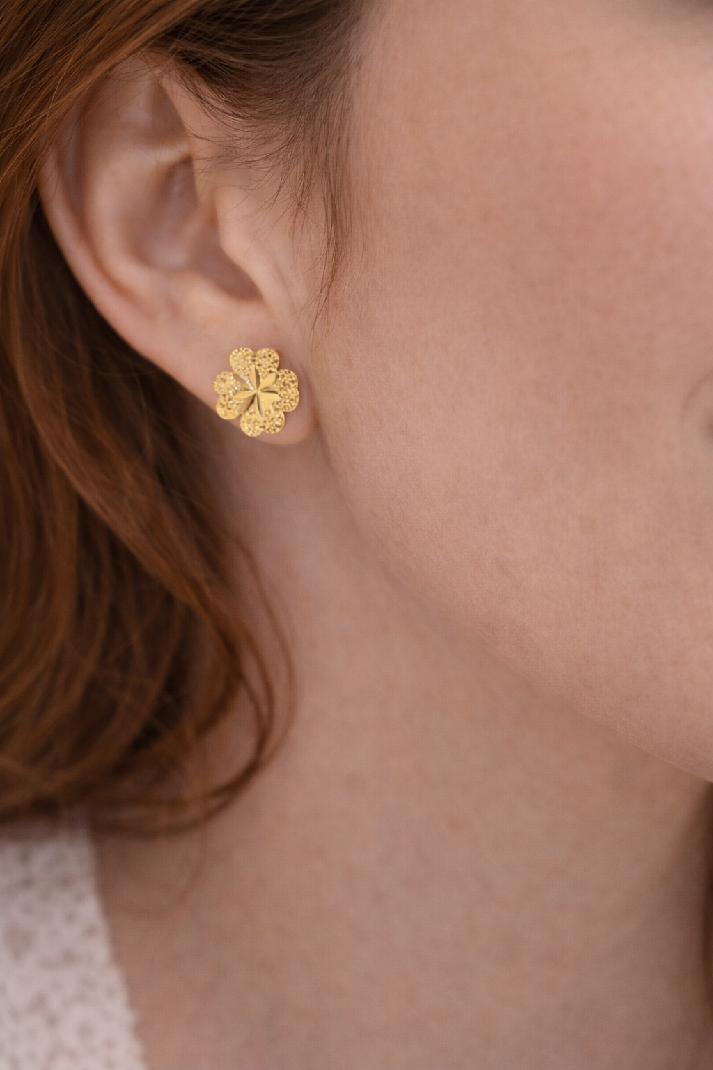 Os Brincos Trevo em Ouro representam sorte, proteção e boas energias, traduzidos em um design elegante e atemporal.