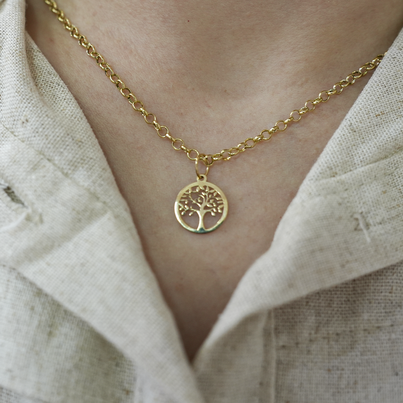 Seu design atemporal une a sofisticação da corrente portuguesa ao simbolismo da Árvore da Vida, tornando a peça perfeita para quem valoriza beleza com propósito.