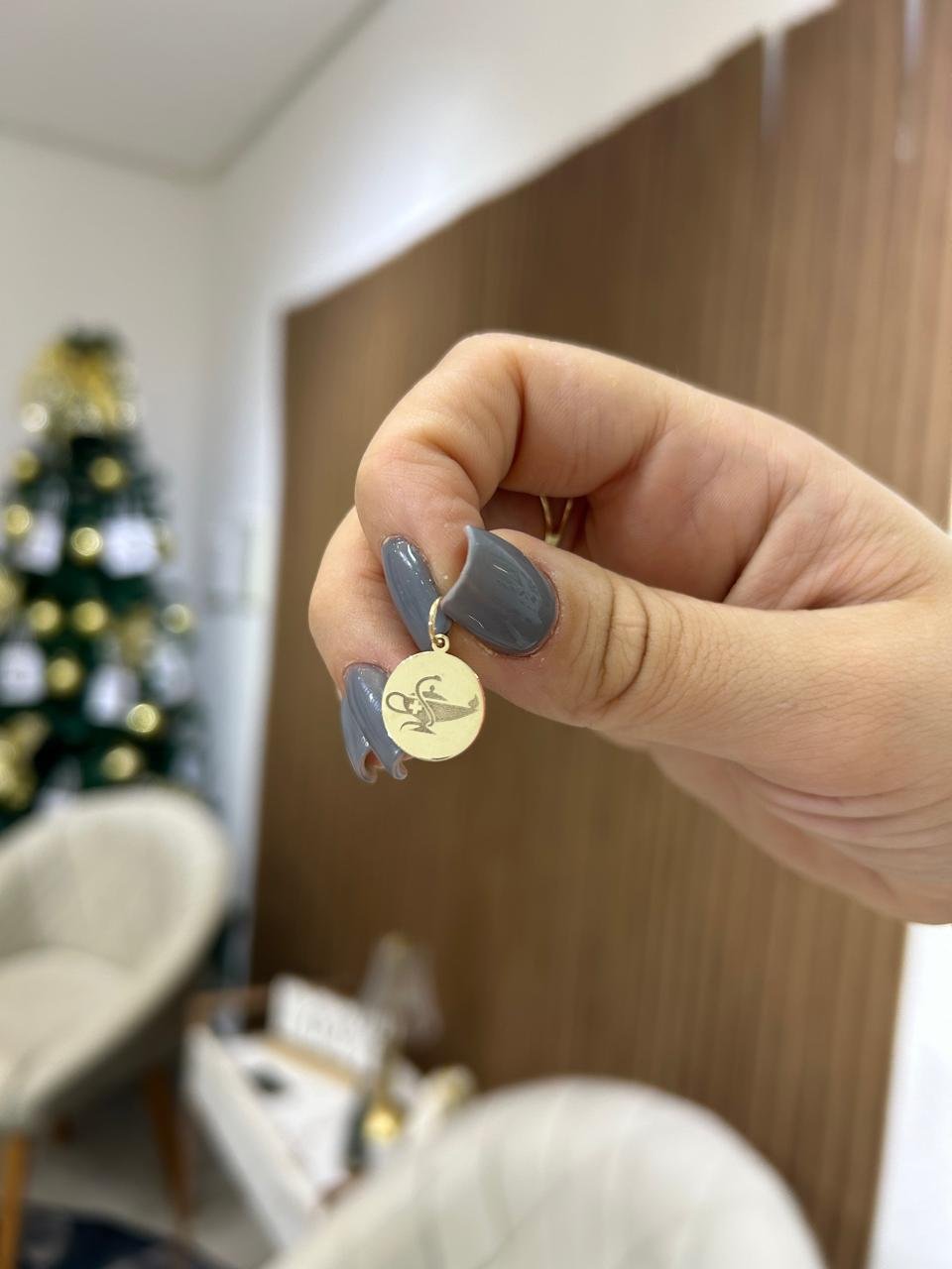 Pingente em ouro com design redondo e símbolo do curso de Enfermagem em baixo-relevo, apresentando acabamento polido que realça o brilho e os detalhes da peça. Seu tamanho de 15 mm oferece equilíbrio perfeito entre delicadeza e destaque, ideal para uso diário ou ocasiões especiais.