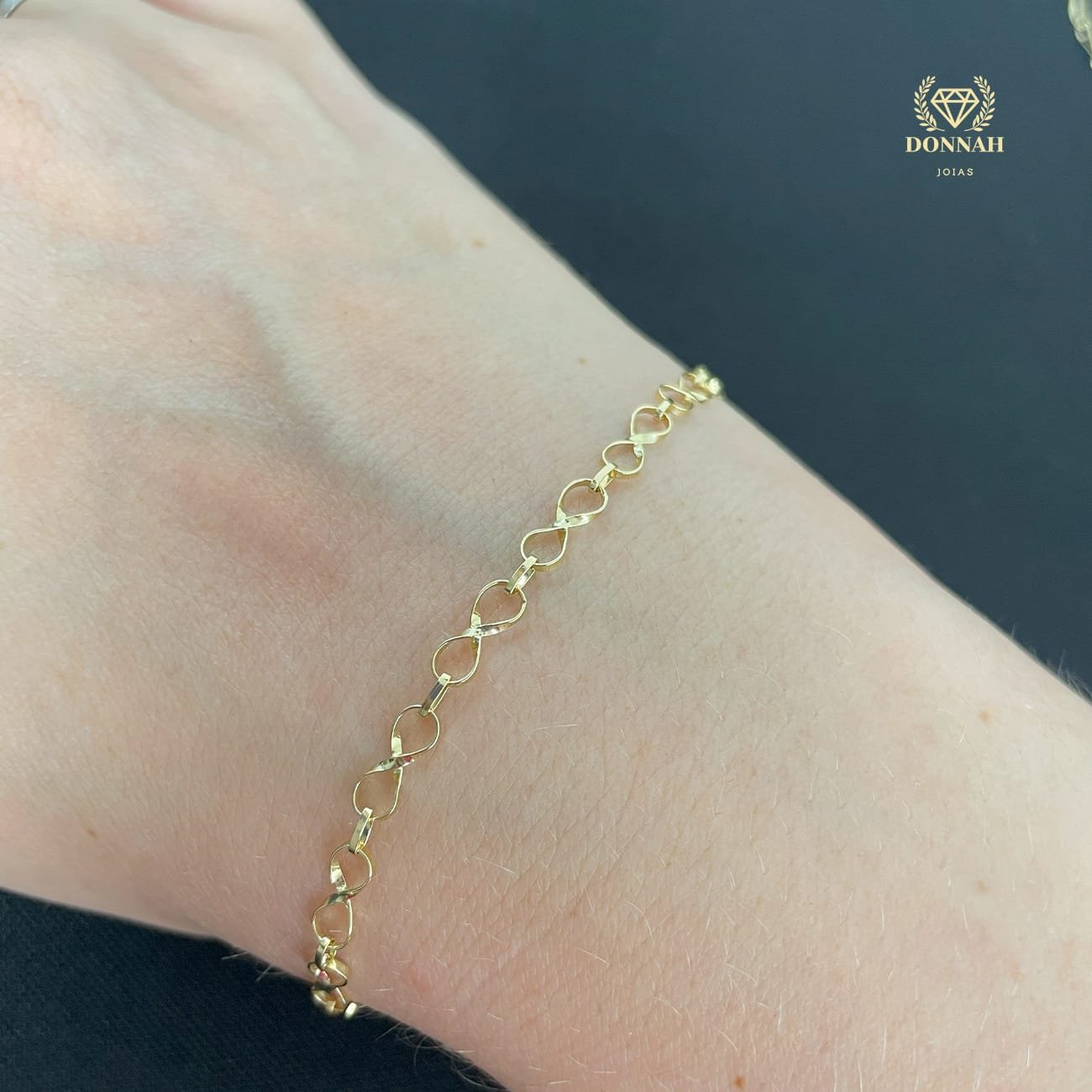 A pulseira Elo Infinito é ideal para quem busca uma joia delicada, com design atemporal e significado especial. Seu visual elegante valoriza o pulso e combina facilmente com outras joias, sendo perfeita tanto para o dia a dia quanto para momentos especiais 💫